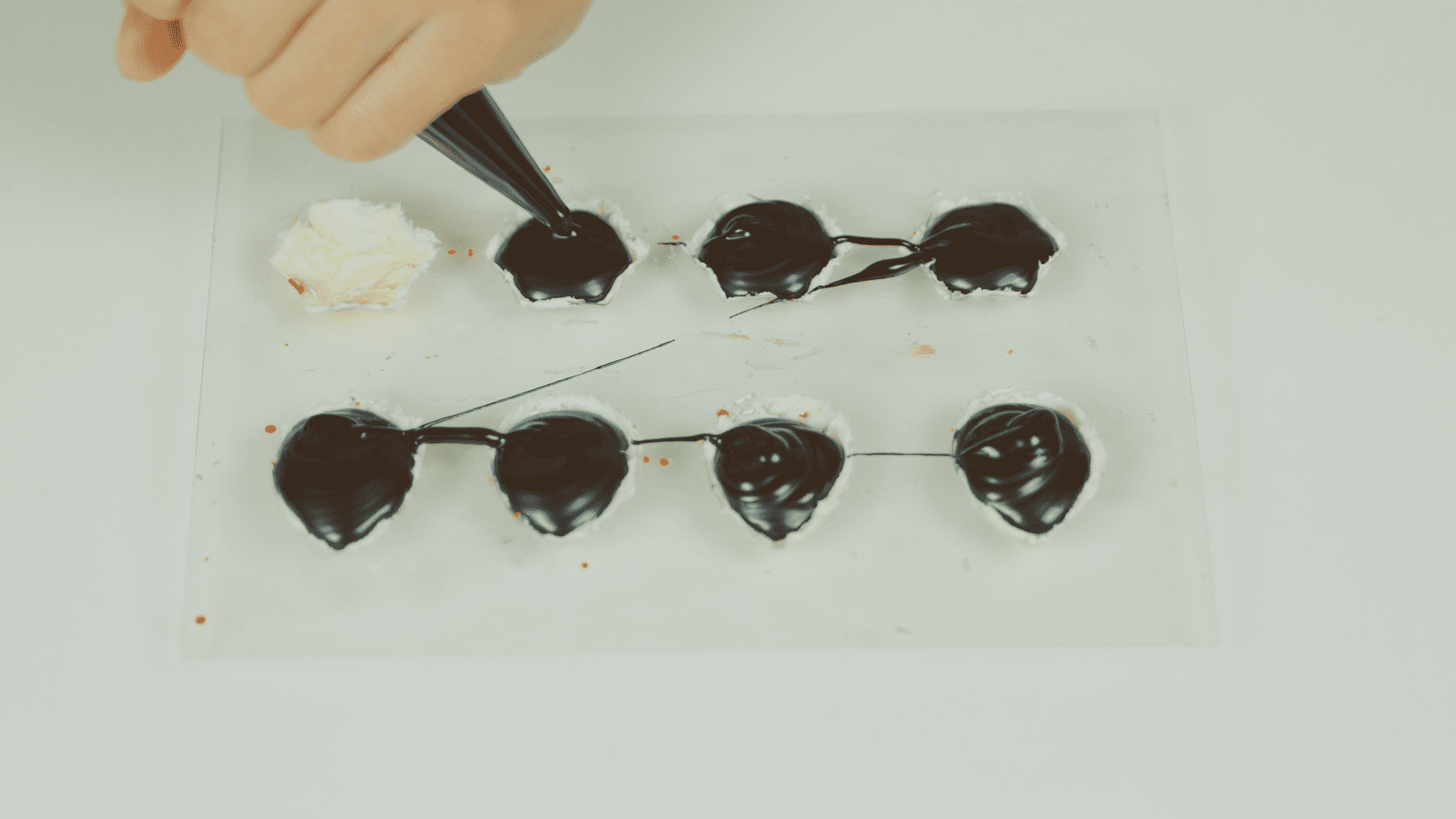 To set your chocolates, place the mold on a level surface inside the fridge for a minimum of 15-20 minutes.