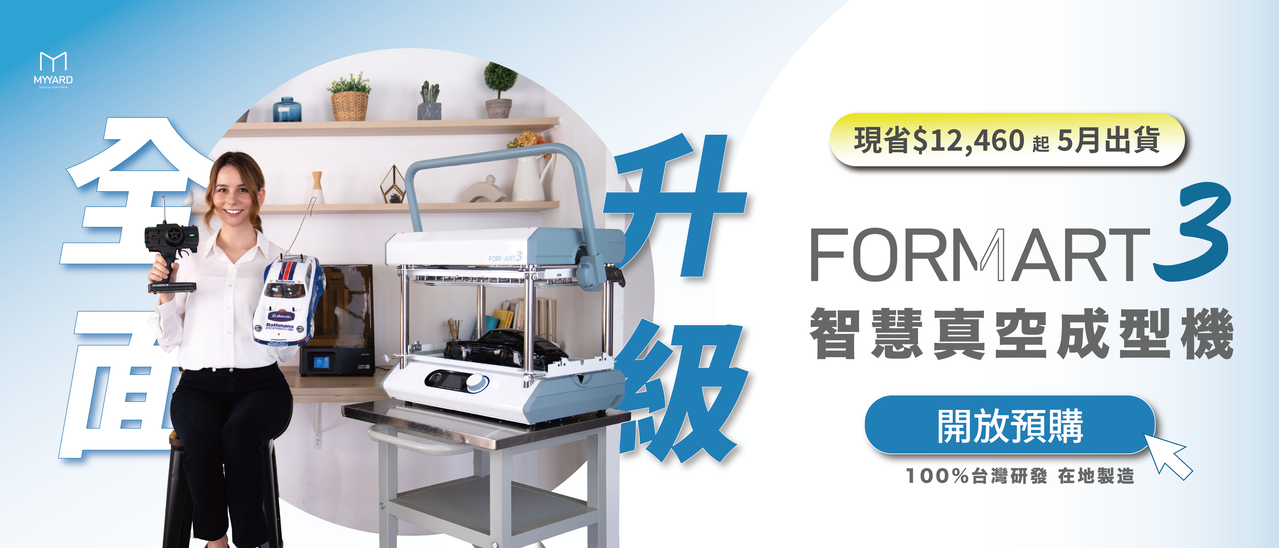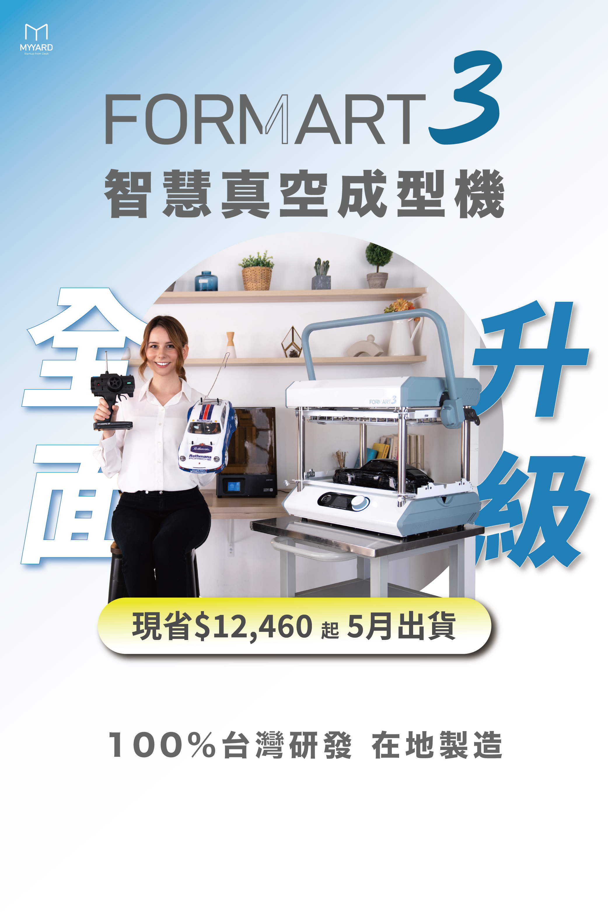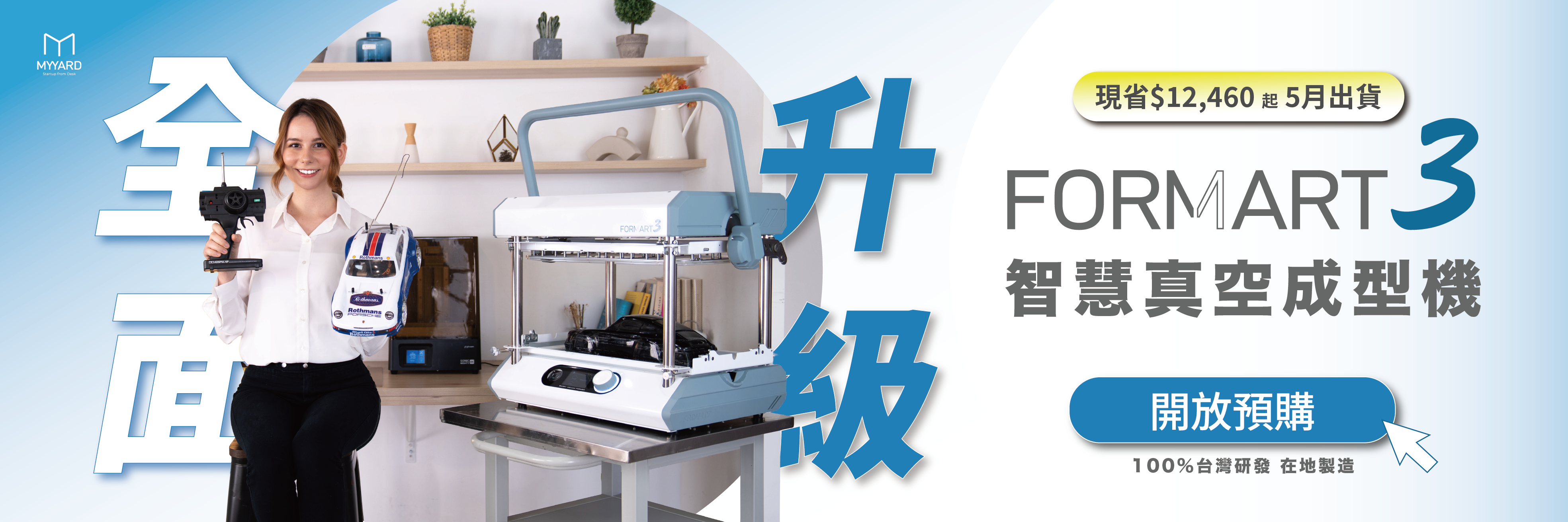 全球募資超過2000萬,MY YARD領先全球推出第一台桌上型智慧 真空成型機!我們不僅把工廠的 真空成型機 縮小,還做到了威力不減、性能與功能更大幅升級! FORMART 智慧 真空成型機 ,其精準的真空度操控與貼近使用者需求的獨家功能,顛覆桌上型工具機印象,無論是家用、個人創業、甜點烘焙、STEAM教學甚至是商品的少量生產,FORMART滿足您對 真空成型機 的所有期待。