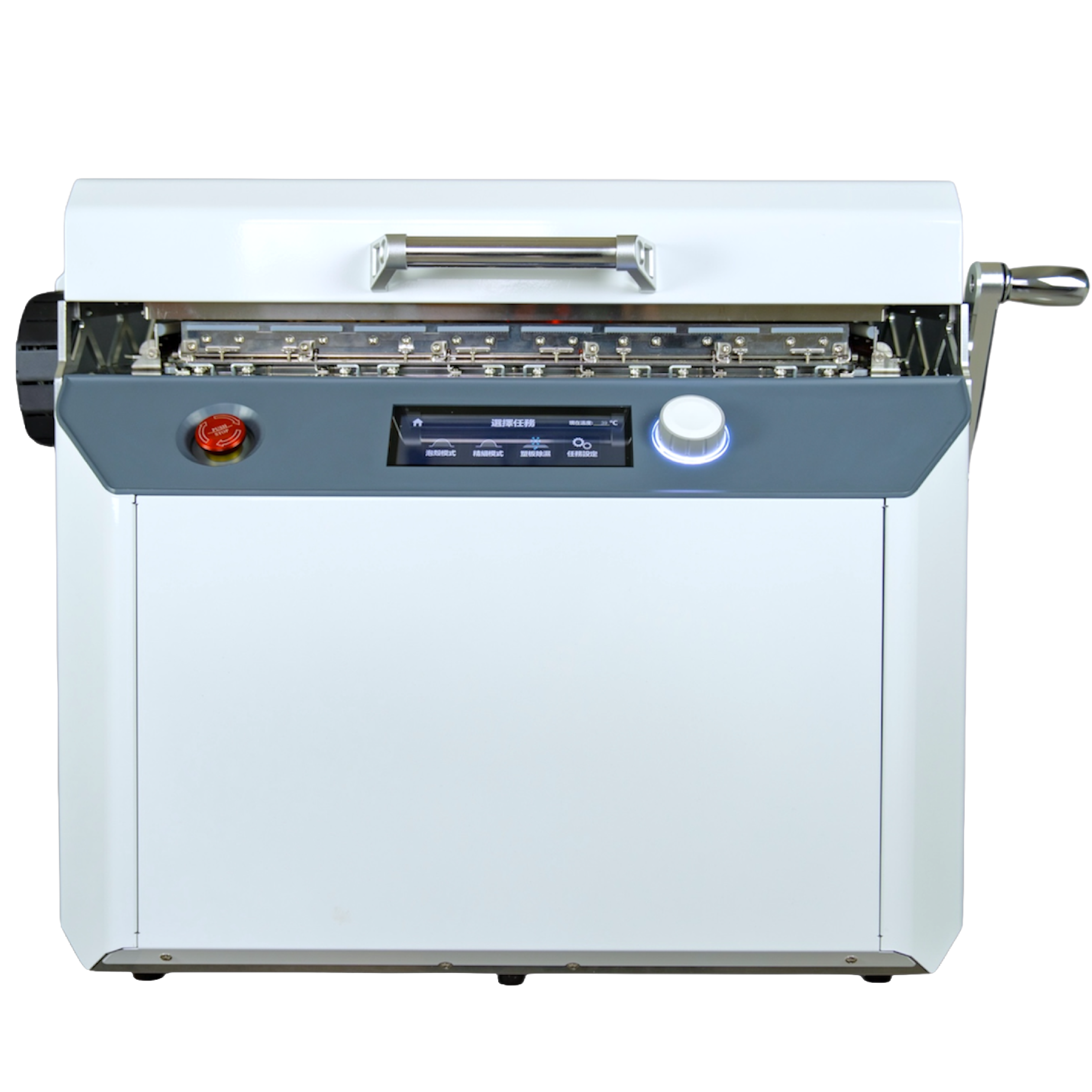選擇工作模式,放上材料片,從螢幕上選取材質,設備就會均勻地加熱材料