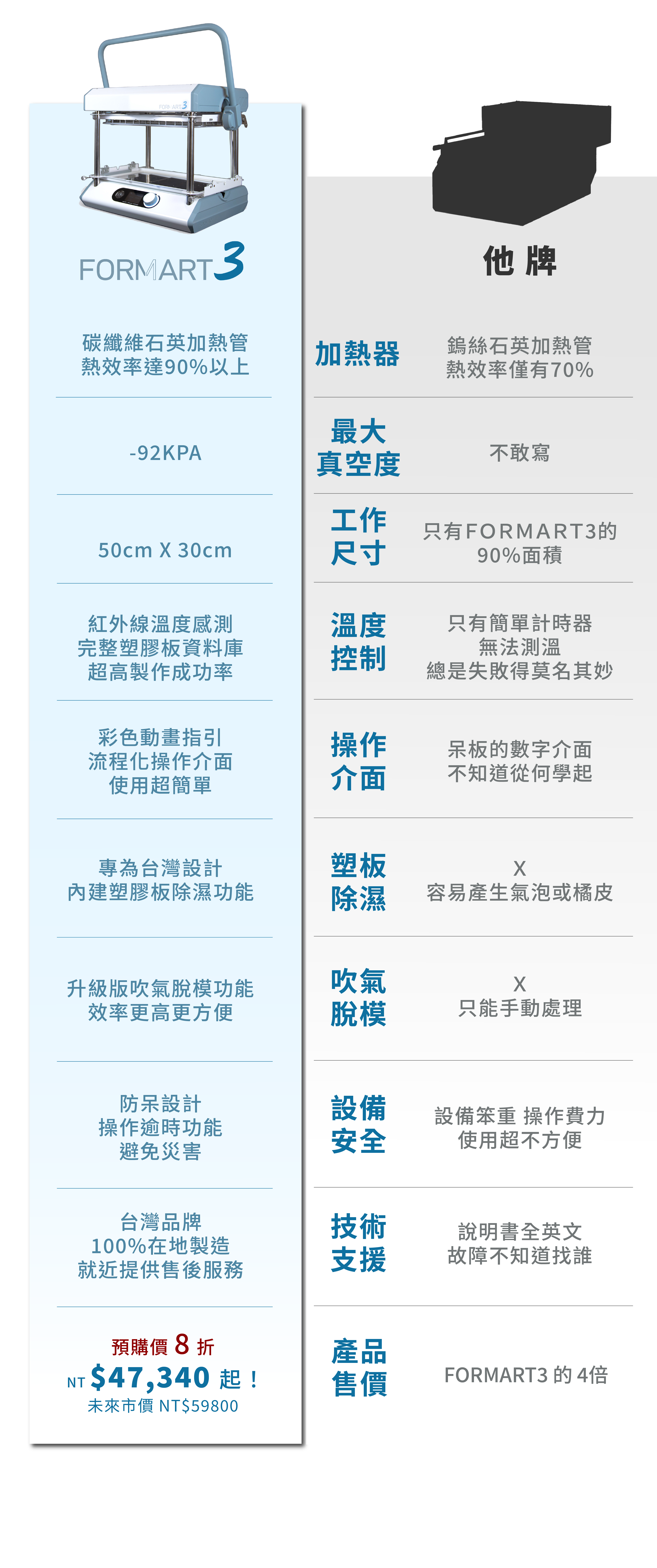 FORMART 3 升級強力真空幫浦,成型吸附更穩定。